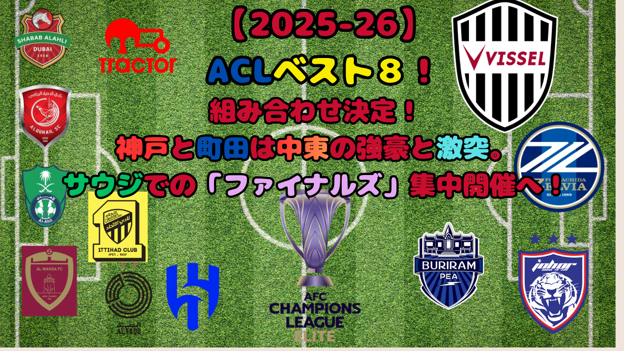 【ACLEベスト8】組み合わせ決定!神戸と町田は中東の強豪と激突。サウジでの「ファイナルズ」集中開催へ!男子サッカー -