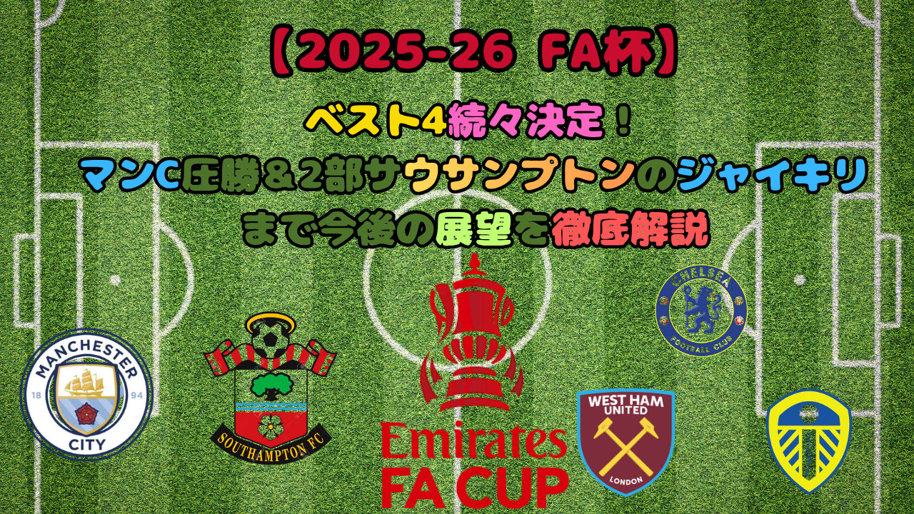 【2025-26 FA杯】ベスト4続々決定!マンC圧勝&2部サウサンプトンのジャイキリまで今後の展望を徹底解説男子サッカー -